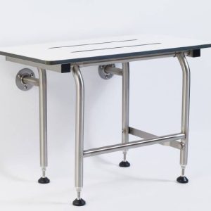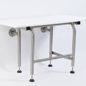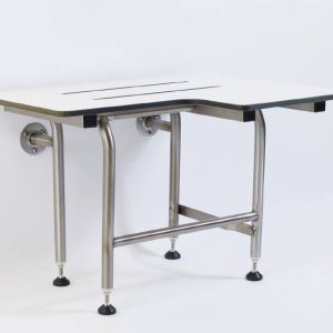Explore our complete line of wall mounted folding shower seats with legs in various materials.